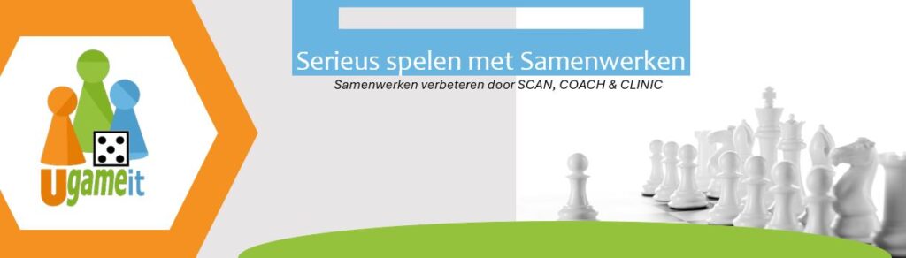 Naast de CLINIC biedt U Game It ook SCAN- en COACH-sessies aan. Door gebruik te maken van spelvormen leren teamleden spelenderwijs wat samenwerken inhoudt en hoe het team dit kan verbeteren. De spellen op deze pagina komen niet terug in de COACH-sessies. Het zijn op zichzelf staande bord- en kaartspellen.